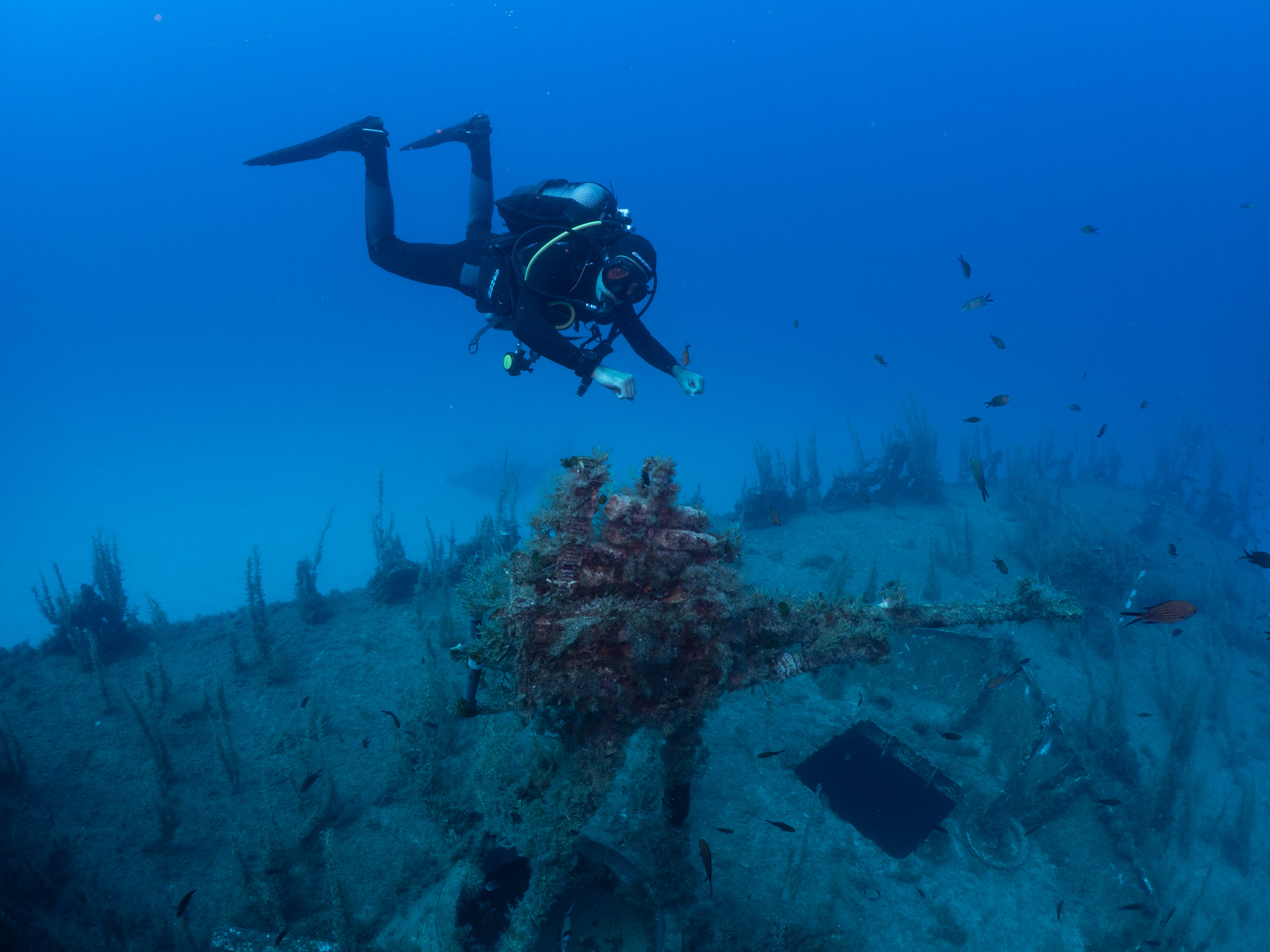 For divers who are not permitted or do not wish to access P29, an abundance of marine life can be observed during external exploration, including sea bream, moray eels, rays, damselfish, cod and amberjack.